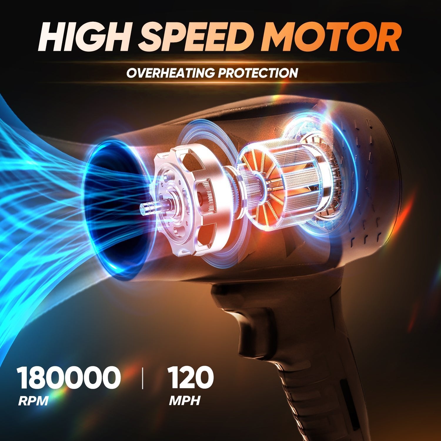 - High Power Performance: The Air Duster provides strong and efficient cleaning with an RPM of 180,000 and a blowing force of 500G.